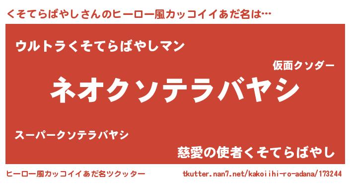 | 胡散臭い通販商品みたいなあだ名 | 『来世でも幸せになれる水素水…その名も「くそてらばやし」』 |