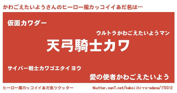 | ポケモン風あだ名 | 『ヒカワゴエタイヨウ』『カーワイ』 |