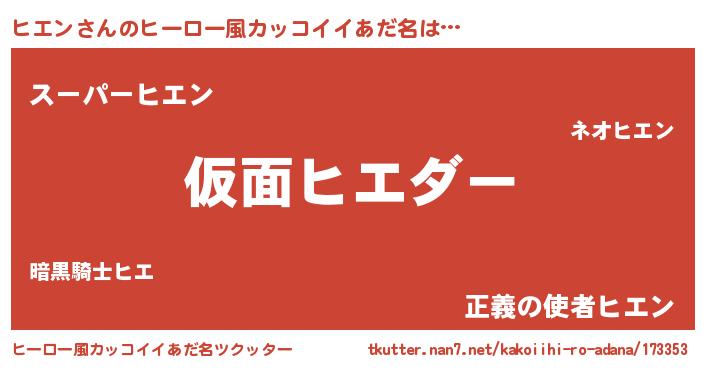 | 男性向けラノベタイトル風あだ名 | 『この素晴らしい世界にヒエンを!』 |