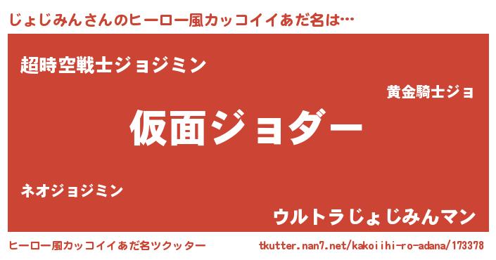 | 男性向けラノベタイトル風あだ名 | 『魔弾の王とじょじみん』 |
