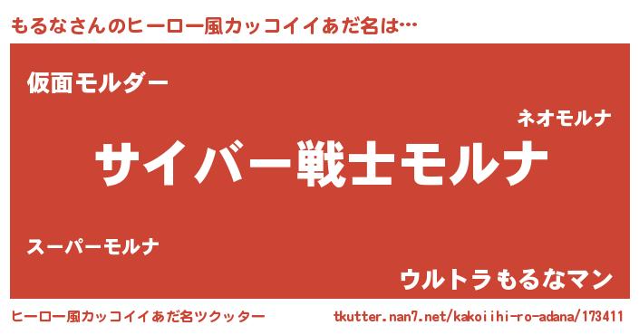 | 男性向けラノベタイトル風あだ名 | 『転生したらもるなだった件』 |
