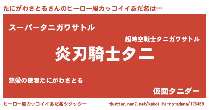 | 男性向けラノベタイトル風あだ名 | 『たにがわさとるの嫁は女の子じゃないと思った?』 |