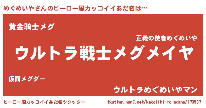 | 意味不明あだ名 | 『自称めぐめいや』 |
