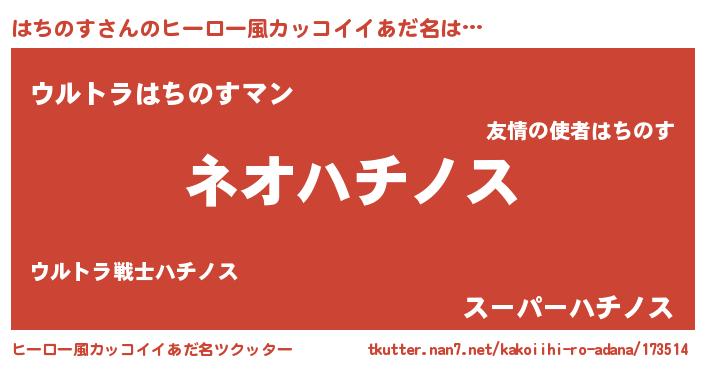 | 男性向けラノベタイトル風あだ名 | 『はちのすという概念が存在しない退屈な世界 』 |