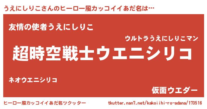 | 男性向けラノベタイトル風あだ名 | 『緋弾のウエニシリコ』 |