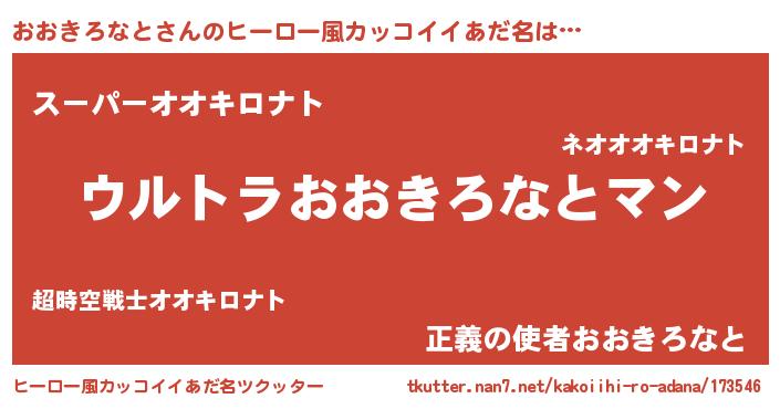 | 男性向けラノベタイトル風あだ名 | 『おおきろなと~年齢イコール彼女いない歴の魔法使い~』 |
