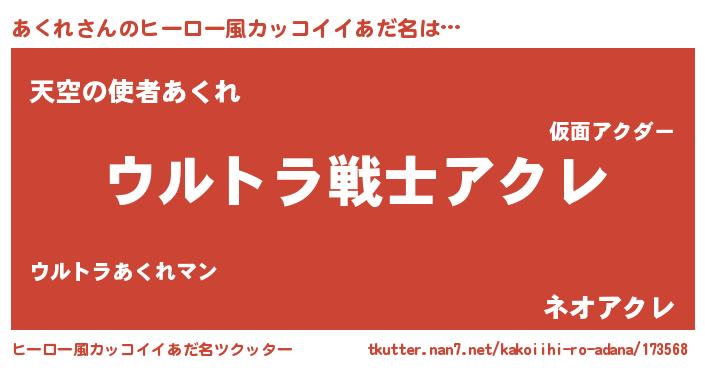 | 女子向けラノベタイトル風あだ名 | 『あくれなんてお断りですっ。』 |