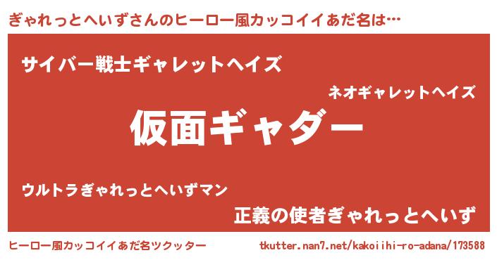 | 男性向けラノベタイトル風あだ名 | 『この素晴らしい世界にぎゃれっとへいずを!』 |