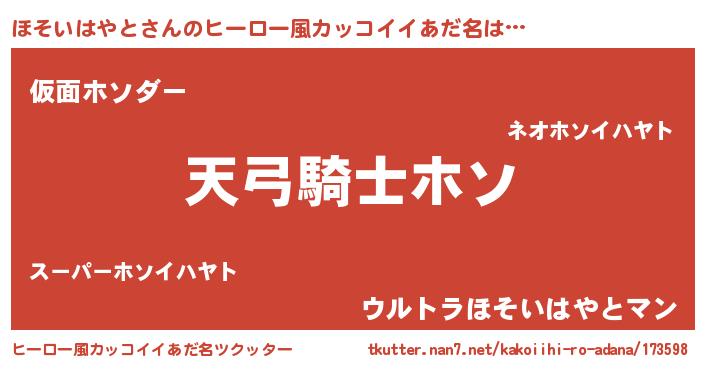 | 胡散臭い通販商品みたいなあだ名 | 『全米が絶賛したサプリメント…その名も「ほそいはやと」』 |