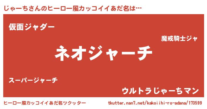 | 男性向けラノベタイトル風あだ名 | 『じゃーちという概念が存在しない退屈な世界 』 |