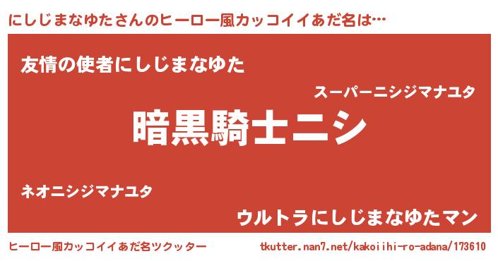 | ポケモン風あだ名 | 『ヒニシジマナユタ』『ニックウザ』 |