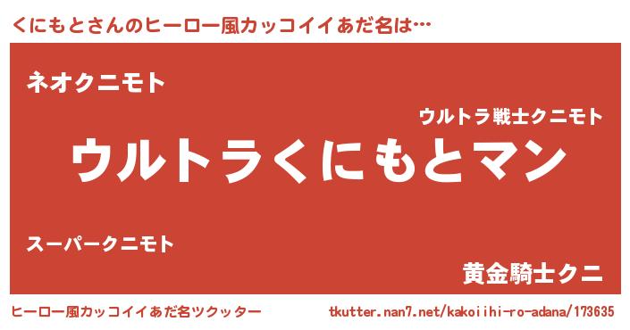 | 男性向けラノベタイトル風あだ名 | 『くにもと~年齢イコール彼女いない歴の魔法使い~』 |