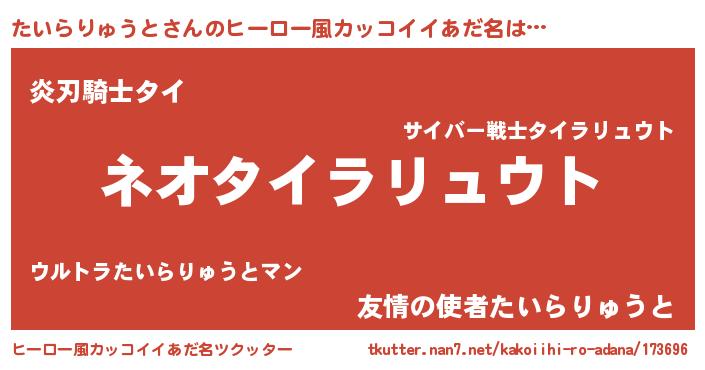 | 胡散臭い通販商品みたいなあだ名 | 『絶対に幸福をもたらす健康食品…その名も「たいらりゅうと」』 |