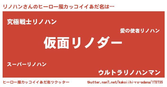 | 意味不明あだ名 | 『住所不定無職リノハン(8歳)』 |