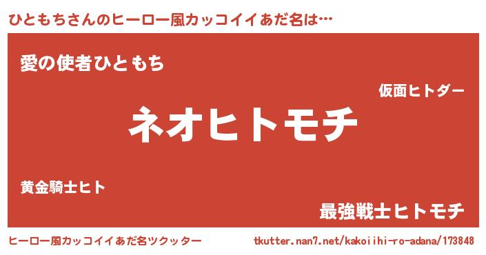 | 男性向けラノベタイトル風あだ名 | 『ひともちという概念が存在しない退屈な世界 』 |