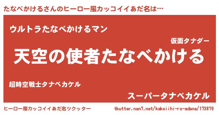 | 男性向けラノベタイトル風あだ名 | 『たなべかける~年齢イコール彼女いない歴の魔法使い~』 |