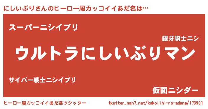 | 男性向けラノベタイトル風あだ名 | 『にしいぶりに滅ぼされるだけの簡単なお仕事です』 |