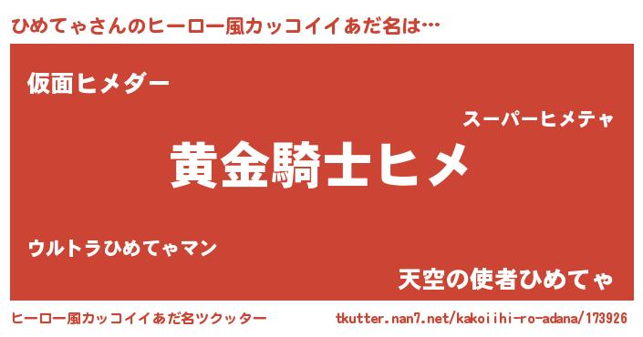 | 女子向けラノベタイトル風あだ名 | 『ひめてゃは平凡を望む』 |