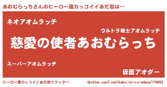 | 男性向けラノベタイトル風あだ名 | 『ノーゲーム・ノーアオムラッチ』 |