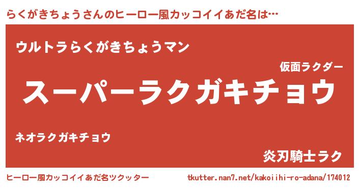 | ピコ太郎風あだ名 | 『ラコ次郎』『ピラ十郎』『ラク三郎』 |