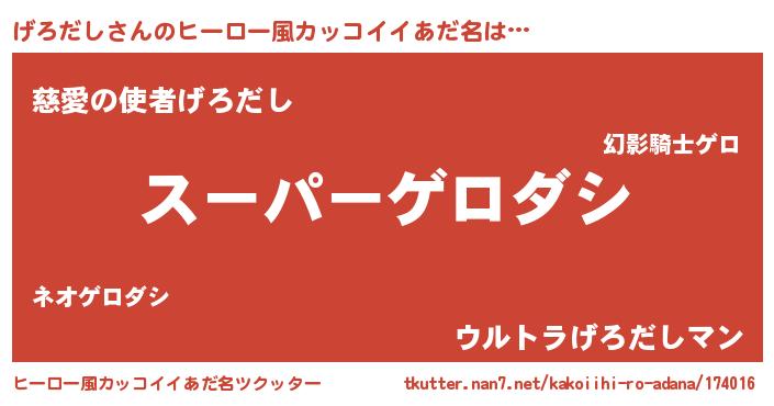 げろだしさんのヒーロー風カッコイイあだ名をツクッター!