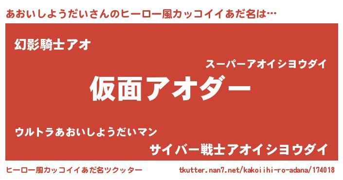 | ポケモン風あだ名 | 『アーオイ』『ヒアオイシヨウダイ』 |