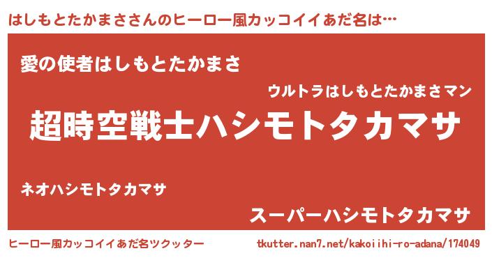 | 男性向けラノベタイトル風あだ名 | 『緋弾のハシモトタカマサ』 |