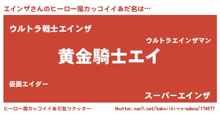 | 男性向けラノベタイトル風あだ名 | 『ダンジョンにエインザを求めるのは間違っているだろうか』 |