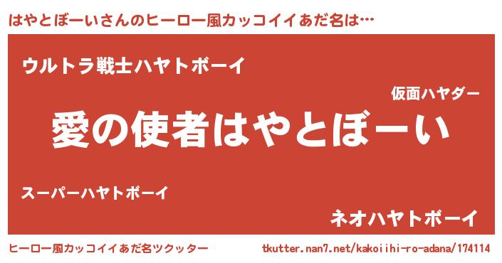 | ヘコむあだ名 | 『はやとぼーい(苦笑)』『はやもー』 |