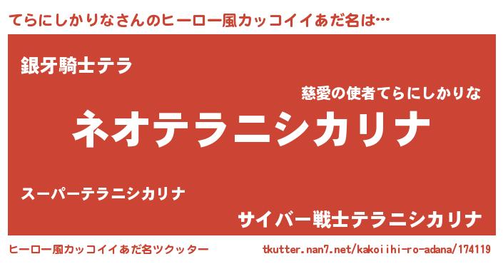 | ヘコむあだ名 | 『てらにしかりな(震え声)』『てら太郎』 |