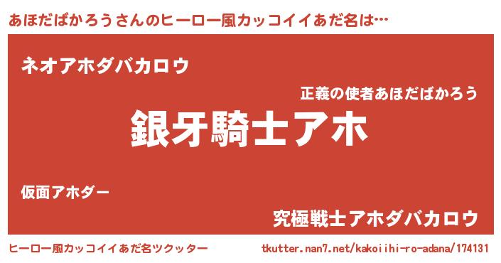 | 男性向けラノベタイトル風あだ名 | 『ダンジョンにあほだばかろうを求めるのは間違っているだろうか』 |