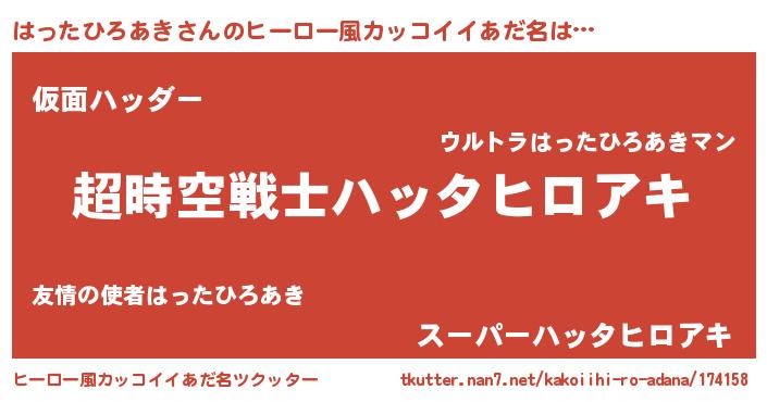 | 男性向けラノベタイトル風あだ名 | 『ハッタヒロアキスレイヤー』 |
