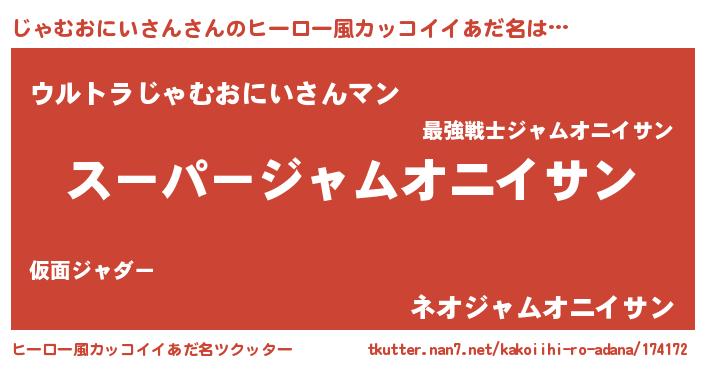 | 胡散臭い通販商品みたいなあだ名 | 『必ず成功するブレスレット…その名も「じゃむおにいさん」』 |