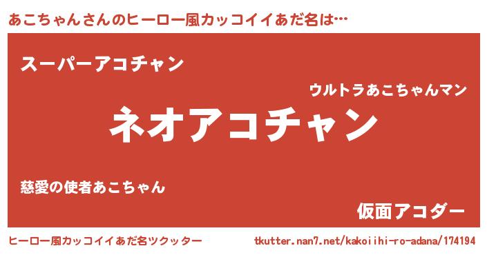 | 意味不明あだ名 | 『永久保存あこちゃん』 |