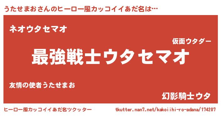 | 男性向けラノベタイトル風あだ名 | 『うたせまおに滅ぼされるだけの簡単なお仕事です』 |