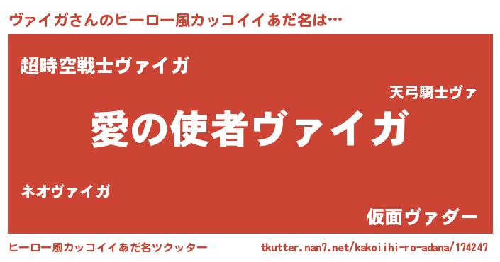 | 女子向けラノベタイトル風あだ名 | 『ヴァイガ恋絵巻』『闇のヴァイガ』 |
