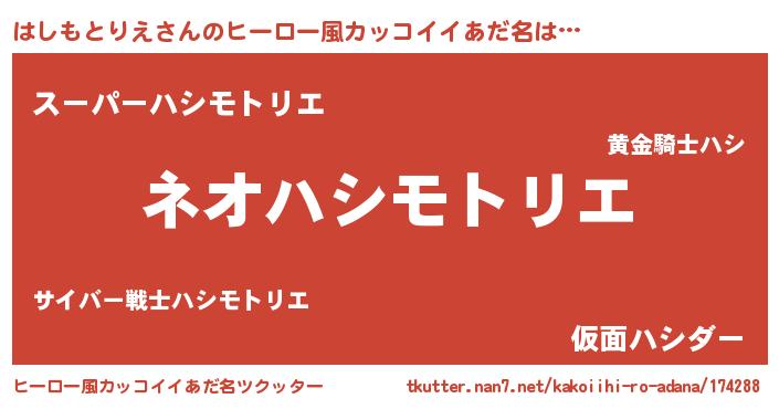 | ヘコむあだ名 | 『はしもとりえ(爆)』『はしもー』 |