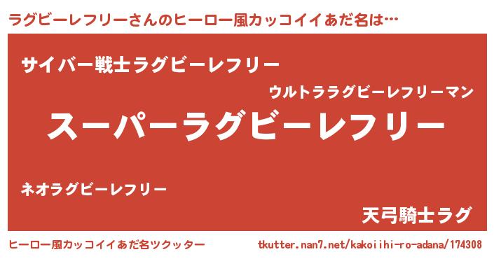 | 男性向けラノベタイトル風あだ名 | 『ラグビーレフリーアートオンライン』 |