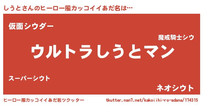 | 男性向けラノベタイトル風あだ名 | 『うちの娘の為ならば、俺はもしかしたらしうとも倒せるかもしれない。』 |