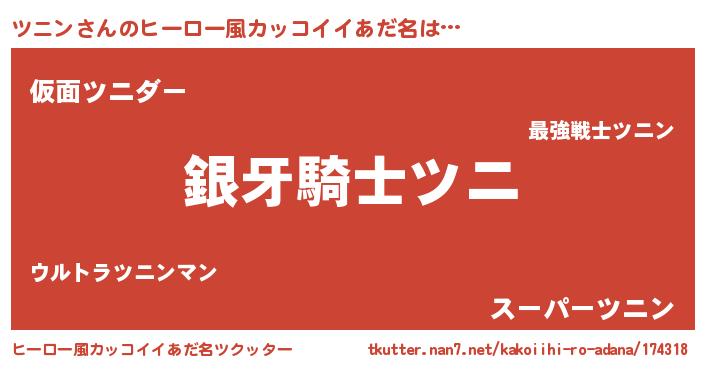 | 胡散臭い通販商品みたいなあだ名 | 『伝統あるサプリメント…その名も「ツニン」』 |