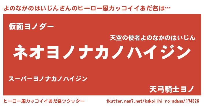 | ヘコむあだ名 | 『よのなかのはいじん(震え声)』『よのっ子』 |