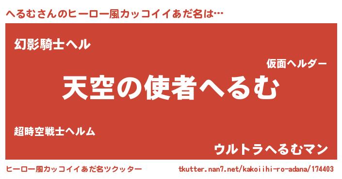 | 男性向けラノベタイトル風あだ名 | 『ノーゲーム・ノーヘルム』 |
