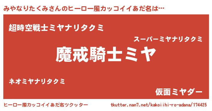 | 男性向けラノベタイトル風あだ名 | 『ダンジョンにみやなりたくみを求めるのは間違っているだろうか』 |