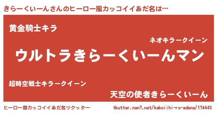 | 意味不明あだ名 | 『きらーくいーんフォーエバー』 |
