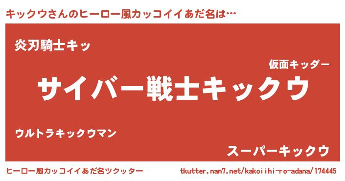 | 女子向けラノベタイトル風あだ名 | 『闇のキックウ』『キックウは平凡を望む』 |