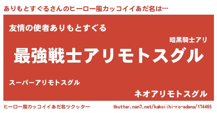 | 男性向けラノベタイトル風あだ名 | 『Re:ありもとすぐるから始める異世界生活』 |