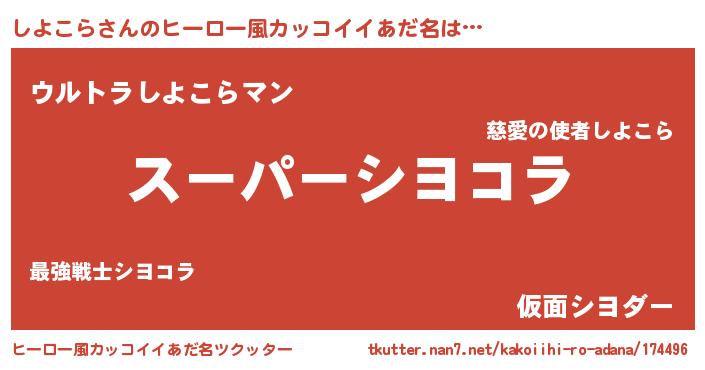 | 胡散臭い通販商品みたいなあだ名 | 『億万長者になれるブレスレット…その名も「しよこら」』 |