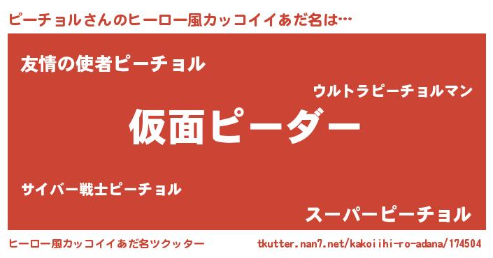 | 男性向けラノベタイトル風あだ名 | 『魔弾の王とピーチョル』 |