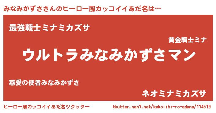 | 男性向けラノベタイトル風あだ名 | 『緋弾のミナミカズサ』 |