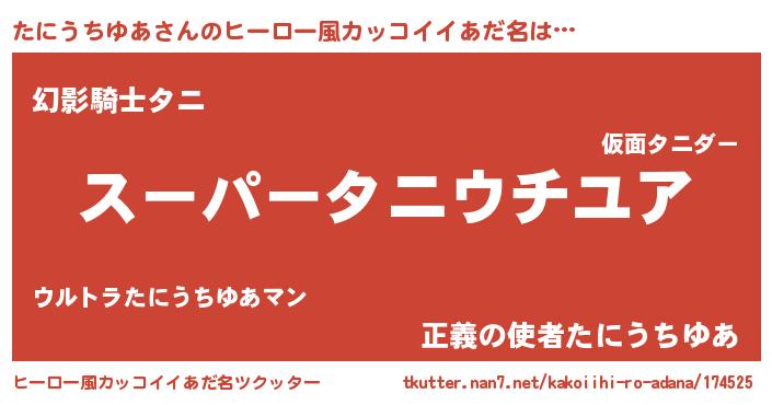 | 胡散臭い通販商品みたいなあだ名 | 『億万長者になれるブレスレット…その名も「たにうちゆあ」』 |